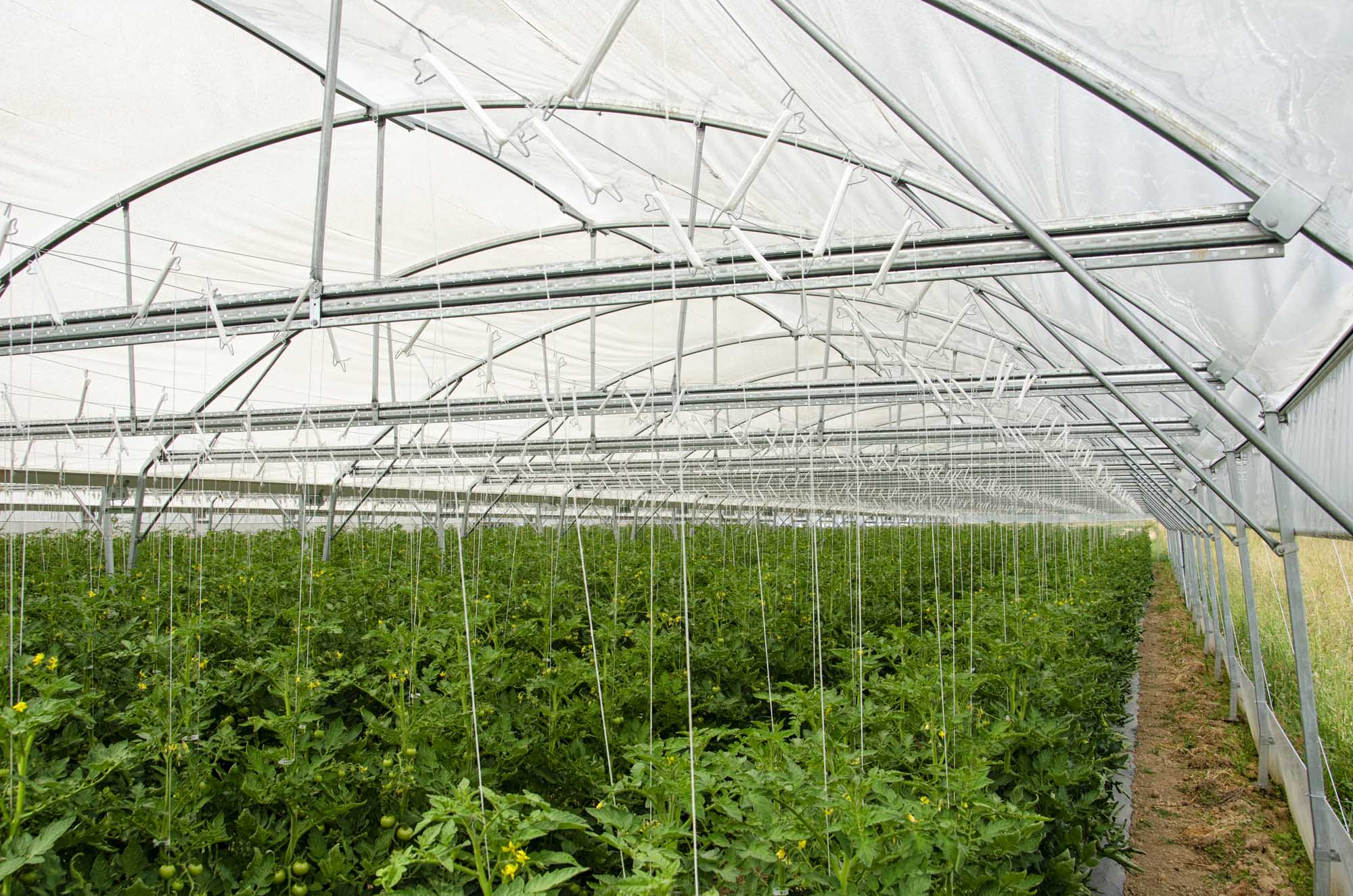Invernaderos modernos, sólidos y económicos. Con una estructura más robusta gracias a un pie derecho superior de ojiva, no supera los 4 metros de altura, lo que facilita el funcionamiento de los canales.
